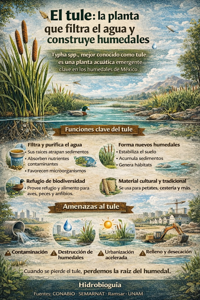El tule es mucho más que una planta acuática: es un filtro natural, un constructor de ecosistemas y un aliado silencioso del agua. Reconocer su valor es un paso clave para conservar los humedales y garantizar agua más limpia y ecosistemas más sanos en el futuro.